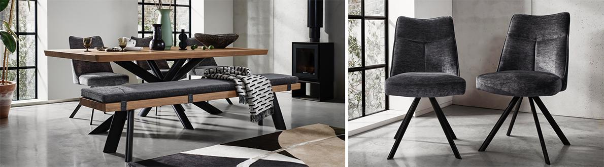 By definition, industrial style is bold, rustic and natural. But what if it was all that – and sophisticated too? The Bodahl Athena range combines traditional industrial design with gentle curves and elegant angles. The collection’s solid oak dining table has a metal star-shaped base with slender legs, and its edge profiles include a gently rounded, Scandi-inspired soft edge. This table is also very customisable –choose from nine beautiful colour finishes for the top and three different edge styles, and it comes in nine sizes. Pair your Athena dining table with dining benches or swivel dining chairs from the range and dine in chic industrial style. The Bodahl Athena collection is handcrafted exclusively for Furniture Village.