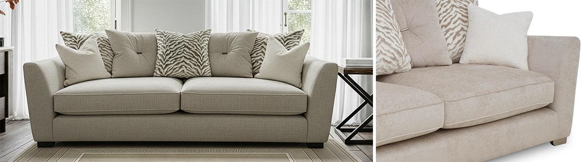 It’s easy to live life in glam luxury when you furnish your living space with pieces from our Boutique Boujee collection. Redefining modern glam style, this extensive range of classic back sofas, scatter back sofas, chairs and footstools also redefines sumptuous comfort. Seats and backs are sprung, seat cushions come with our famous plumpness guarantee, and back scatter cushions and smaller accent cushions are 100% feather. And the details are just as dreamy. With a stunning curved arm, decorative tufting secured by contemporary toggles and a choice of weathered oak or chrome feet, everything comes together quite beautifully. The Boutique Boujee collection is handcrafted in the UK exclusively for Furniture Village.