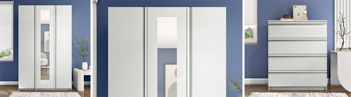 With its high-gloss finish and sleek handleless design, the modern bedroom furniture in our exclusive London Bedrooms Kings Cross range is quite timeless. Easily adapting to different design aesthetics and colour schemes, it’s an ever-fashionable look that’s made to be enjoyed for years to come. Handmade in London from sustainable materials, these wardrobes, chests of drawers and bedside cabinets showcase well-crafted details that include soft-closing doors and drawers and are available in a choice of sophisticated colours. The London Bedrooms Kings Cross range is only available at Furniture Village.