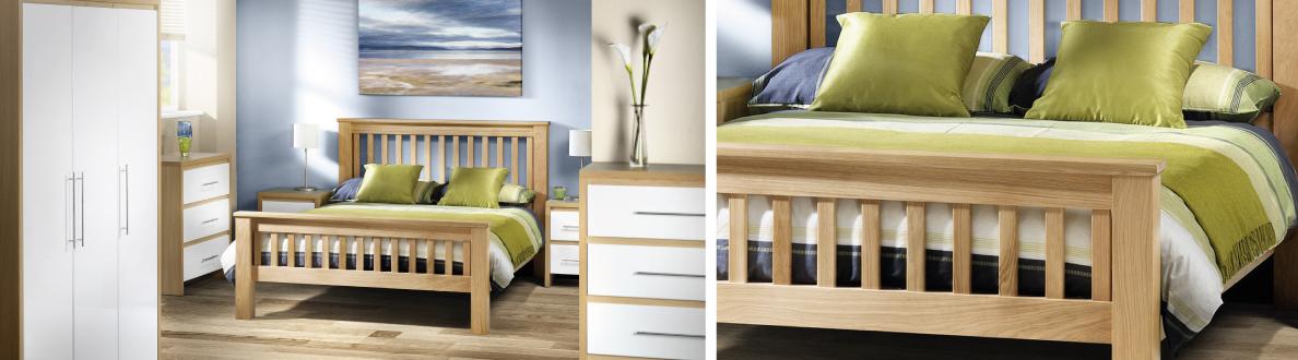 The Lorelle collection of two tone bedroom furniture has a simple, appealingly modern design ideal for the contemporary home. Attractive light oak frames contrast with fashionable white high gloss drawers. Sleek slim stainless steel handles are a chic finishing touch. This collection is available exclusively online, offering great value for money.